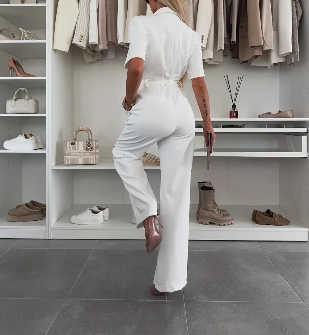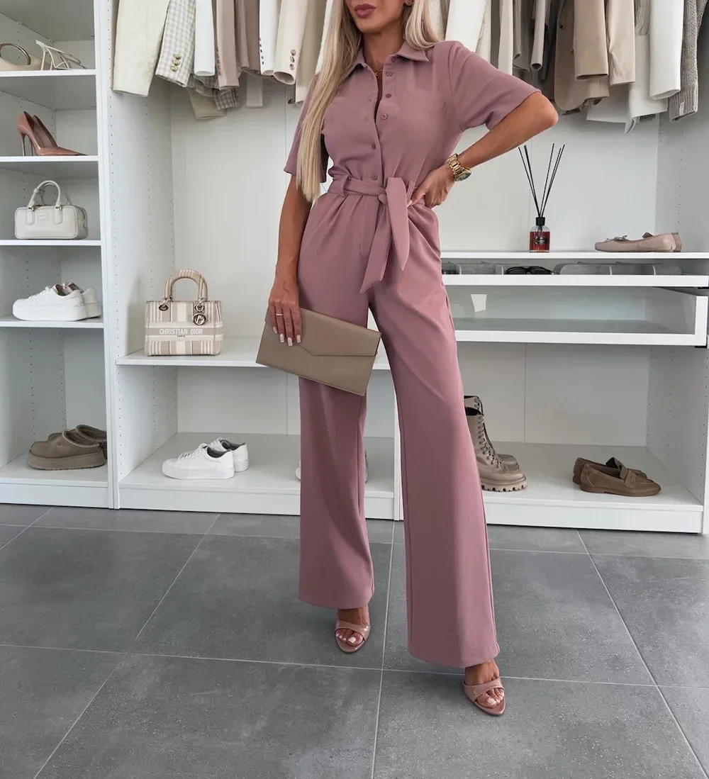 The Fashion Short-sleeved Jumpsuit offers a blend of trendy fashion and practical features. Crafted with durable polyester fabric and equipped with handy pockets, this jumpsuit is ideal for modern women looking for comfort and style. Its full length and wide leg design make it a versatile choice for any event. Stay on top of your fashion game with this essential addition to your wardrobe!