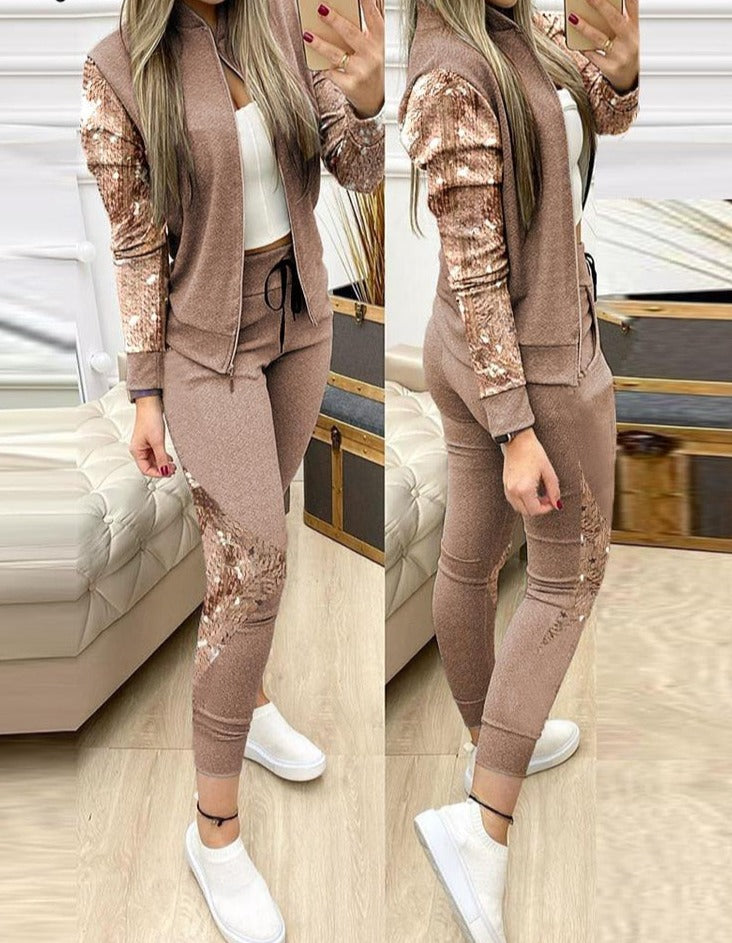 Whether on the street, in the office, or out for the night, this sequins set is sure to keep you warm.