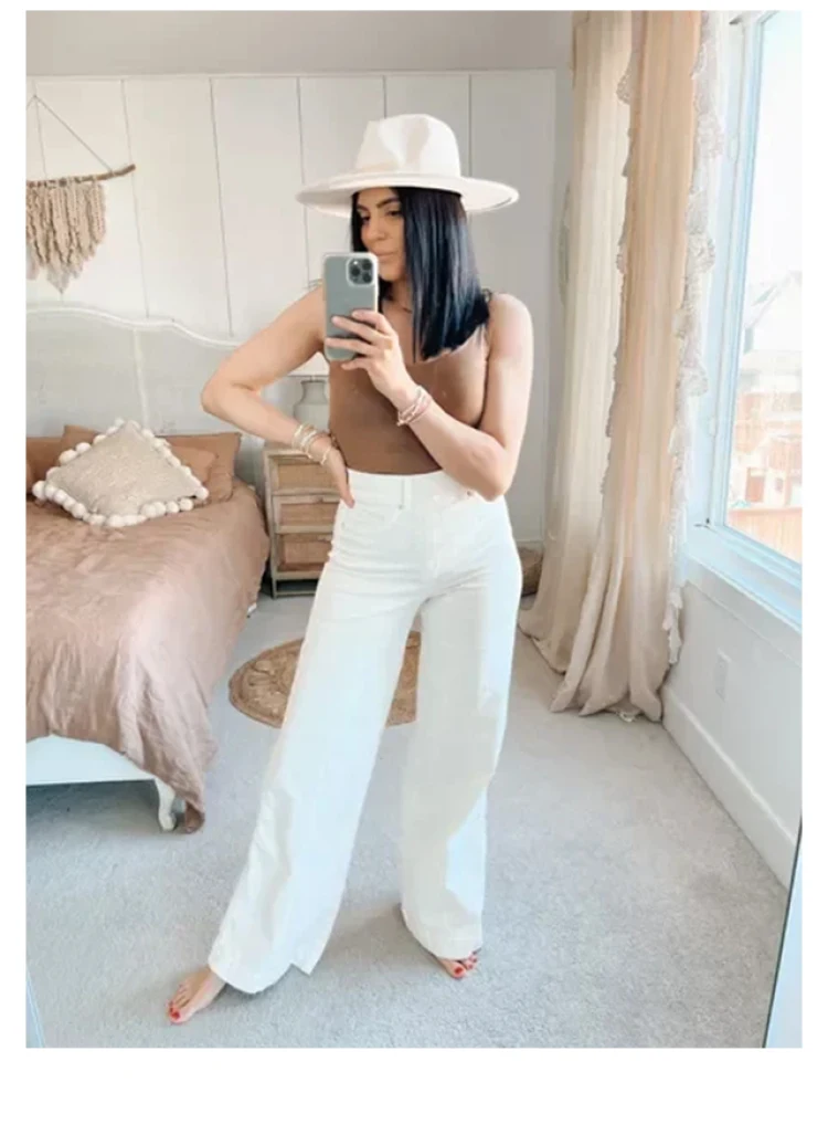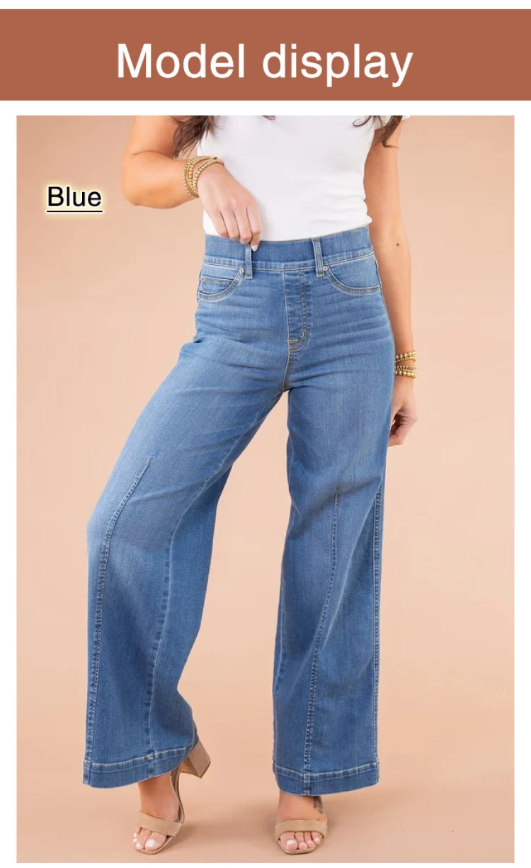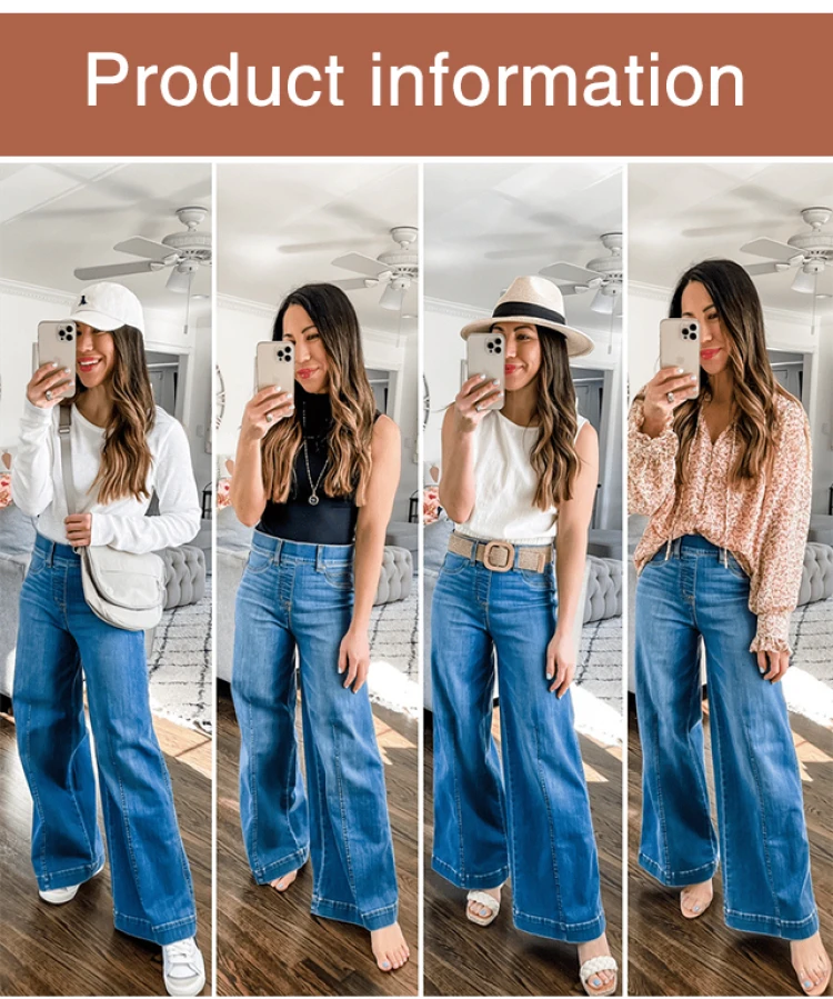 Crafted from a polyester blend with a slight stretch, these fashion-forward mid-rise women's jeans offer a loose, comfortable fit. With tummy control.Their soft fabric and ankle-length design make them perfect for casual wear during the summer season. With a flattering mid waist and four-side stretch, these wide leg jeans are both stylish and comfortable.